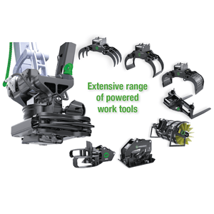 Zusammen mit den Maschinen wird eine breite Palette an Anbauwerkzeugen vorgeführt, die die Vielseitigkeit und Effizienz des Steelwrist Produktportfolios veranschaulichen.