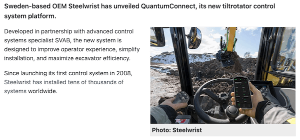 Sweden-based OEM Steelwrist has unveiled QuantumConnect, its new tiltrotator control system platform
